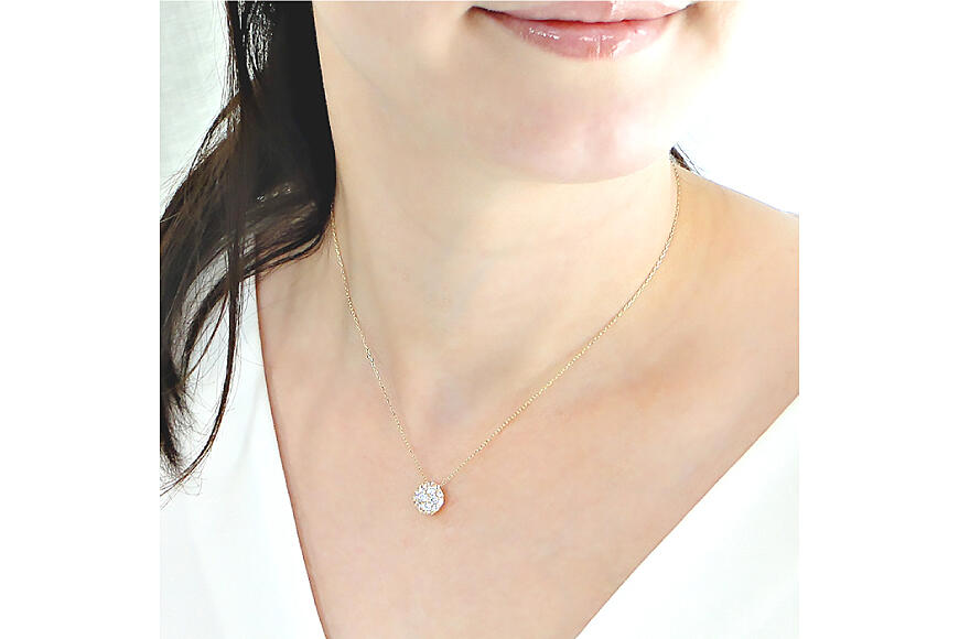 柔らかな印象のラウンドフォルムは存在感があり、着けるだけでデコルテを明るく演出。