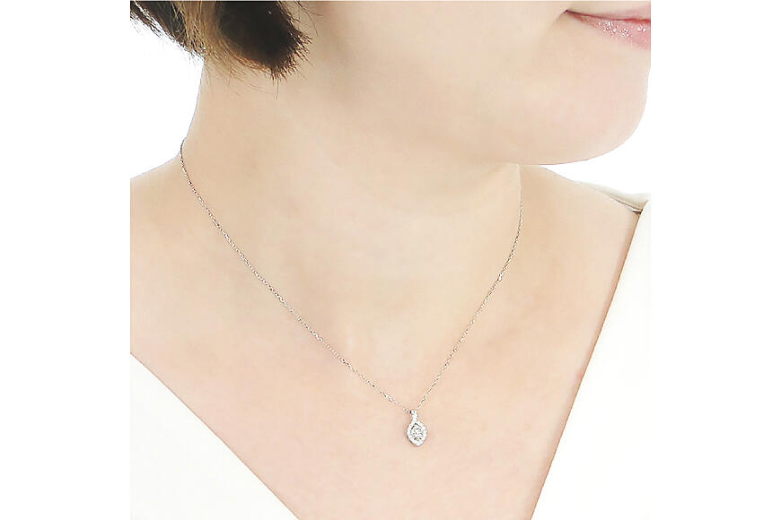 控えめながらも、洗練されたダイヤモンドの眩いきらめきがデコルテに華やぎをプラス!