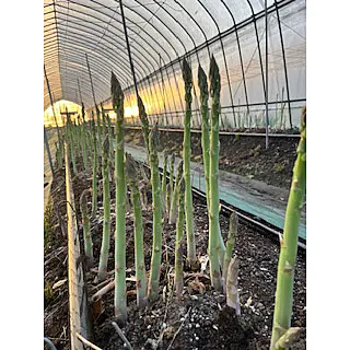 福島県会津坂下町の自然豊かな地域でアスパラを作っています。肥沃な大地で育ち、寒暖差と春までたっぷり蓄えた養分で、甘く、瑞々しく育っています。