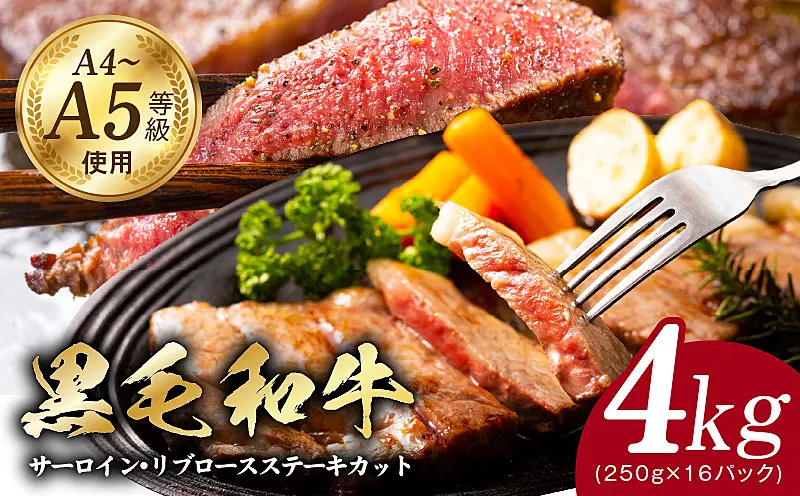 CFX0069 A5/A4ランク 黒毛和牛 サーロイン/リブロースステーキカット 合計4kg(各250g×8P)【極味付け肉】