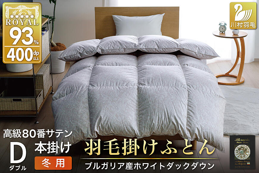 羽毛布団 本掛け ホワイトダックダウン93% ダブル 1.7kg 綿100% シルバー [20745154]