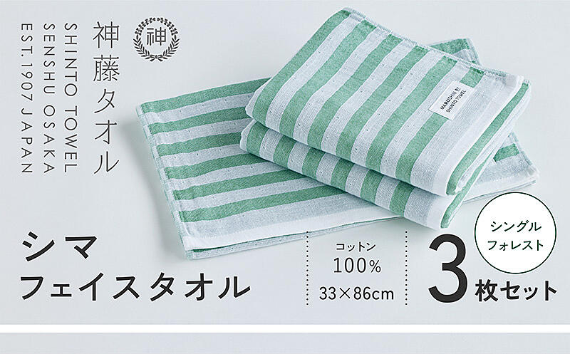 010B1791 神藤タオル「シマ・フェイスタオル」(シングル/フォレスト)3枚セット