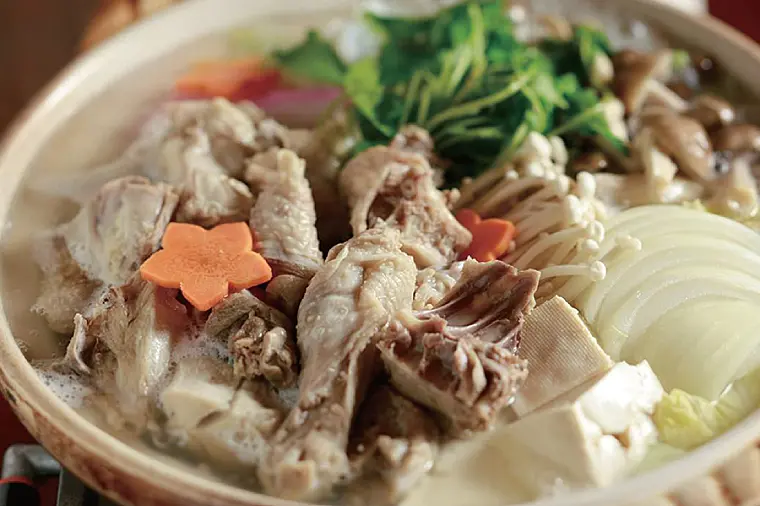 しゃもの緻密でしっかりとした肉質、ジューシーな肉汁、脂肪分が少なく歯ごたえがあって香りが良い味わいの鍋とあん肝が溶けた濃厚なスープと淡泊な身、コラーゲン豊富な皮が食欲をそそるあんこう鍋を同時に注文できるまたとない機会!