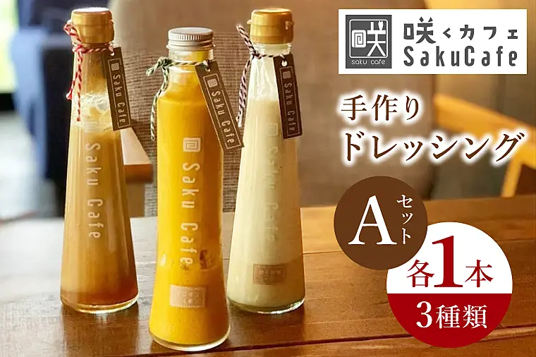 咲くカフェ 手作りドレッシング3種 Aセット【奥久慈りんご・柚子胡椒シーザー・オニオン人参】(BD005-1)