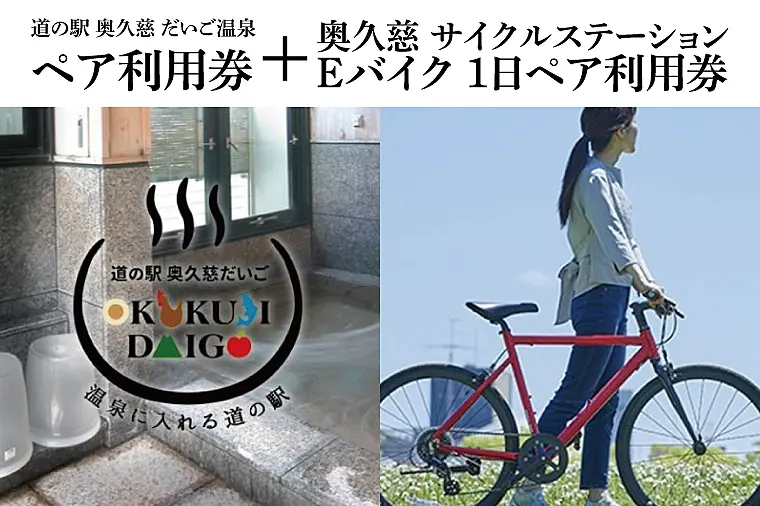 道の駅 奥久慈だいご 温泉 ペア利用券 + サイクルステーション Eバイク 1日 ペア利用券 セット(BS003)