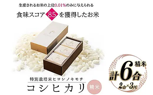 【先行予約】特別栽培米 コシヒカリ ヒロシノキモチ 精米 2合×3PC 陽咲玲 米 お米 コメ 白米 ご飯 F6T-880