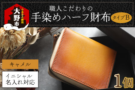 【6色から選べる】職人こだわりの手染めハーフ財布(タイプB)【キャメル】【イニシャル名入れ対応】[J-024002_03]
