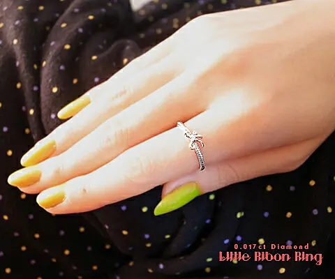 指輪 天然 ダイヤ 2粒 リボン【K10WG】r-25(KRP)H7-1410