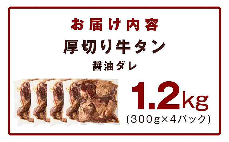 015B543 厚切り牛タン 1.2kg 秘伝の醤油だれ【300g×4P 牛肉 牛たん 厚切り 焼肉 BBQ】