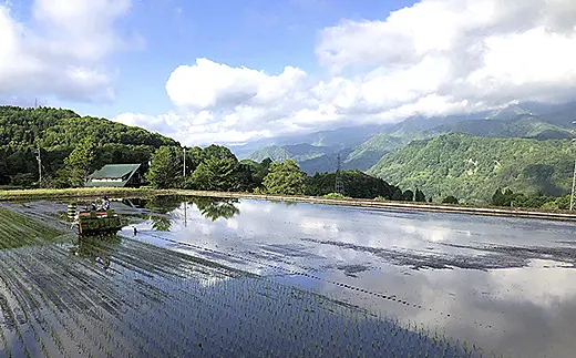 3000m級の山々からの雪解け水がこのお米の源です。清らかな水と澄んだ空気がつくるお米をご賞味ください。
