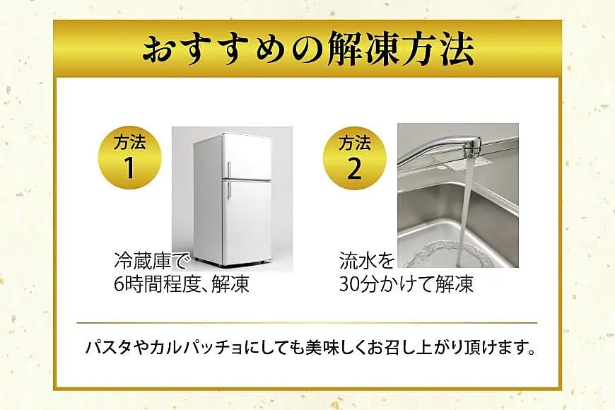 ・こちらの製品は生食用です、解凍してそのままお召し上がりください。