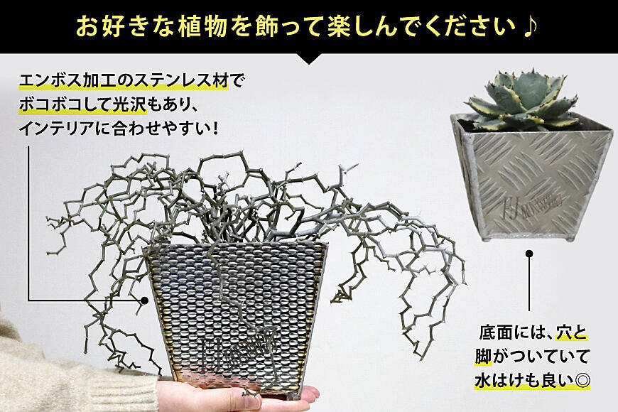 - プランター 鉢 植木 おしゃれ 室内 多肉植物 アガベ ステンレス 金属 花 ガーデン DIY 植物 多肉 観葉植物 ナチュラル