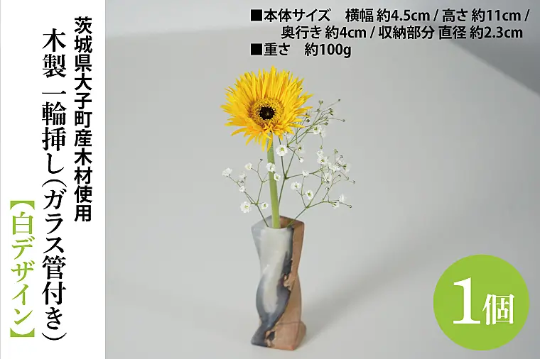 木製 一輪挿し(ガラス管付き)【白デザイン】 |茨城県産 大子町 花瓶 一輪挿し ハンドメイド作品 レジン (BH017)