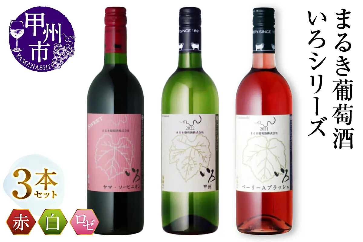 まるき【いろシリーズ】3本 いろヤマ・ソービニオン いろ甲州 いろベーリーAブラッシュ(MG)C-1665