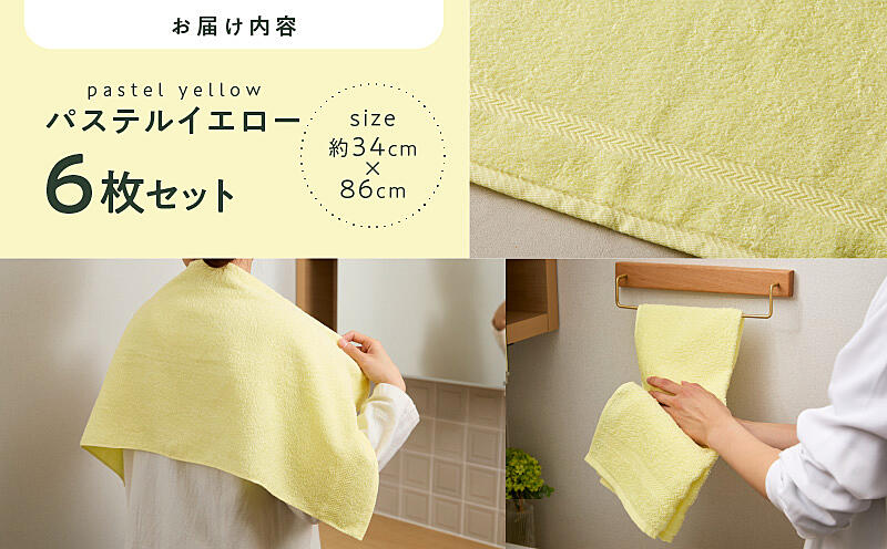 010B1654 コーマカラーフェイスタオル6枚セット(パステルイエロー)泉州タオル