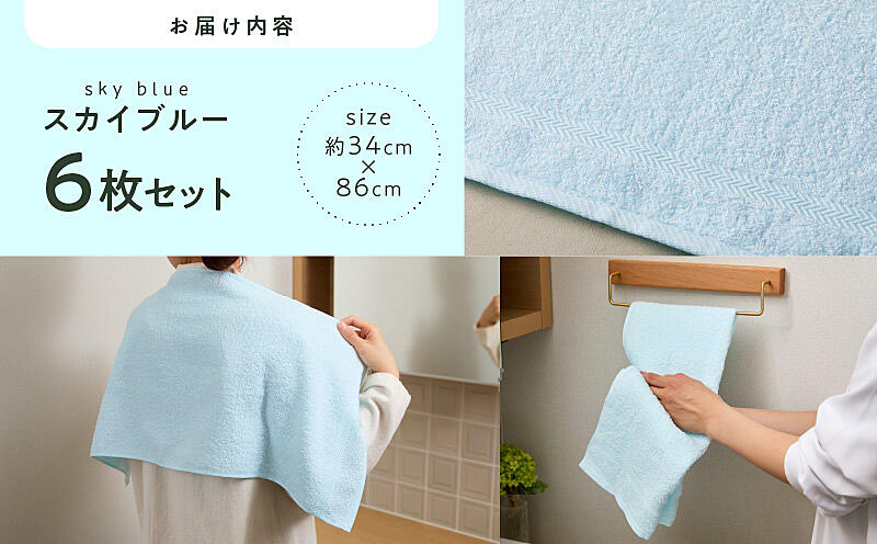 - コーマカラーフェイスタオル6枚セット(スカイブルー)