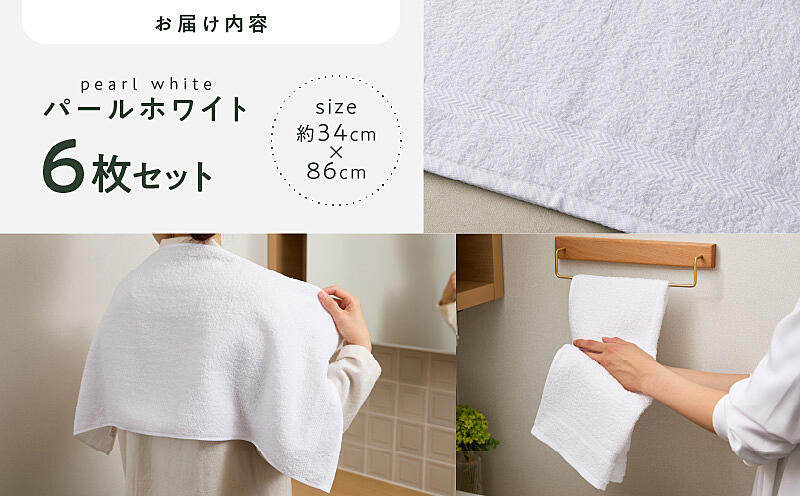 - コーマカラーフェイスタオル6枚セット(パールホワイト)