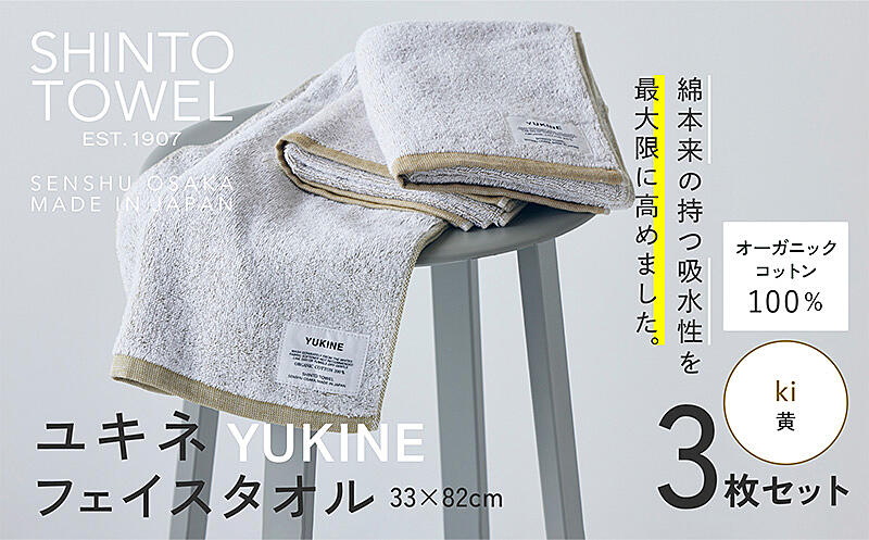 099H3996-1 SHINTO TOWEL「ユキネ・フェイスタオル」ki(黄)3枚セット オーガニックコットン100%