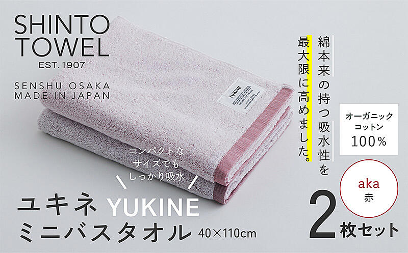 099H4000 SHINTO TOWEL「ユキネ・ミニバスタオル」aka(赤)2枚セット オーガニックコットン100%