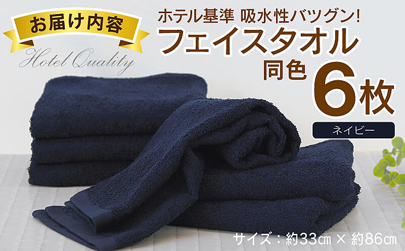 010B1699 【ホテル基準】吸水性バツグン! フェイスタオル 6枚 (ネイビー) 泉州タオル