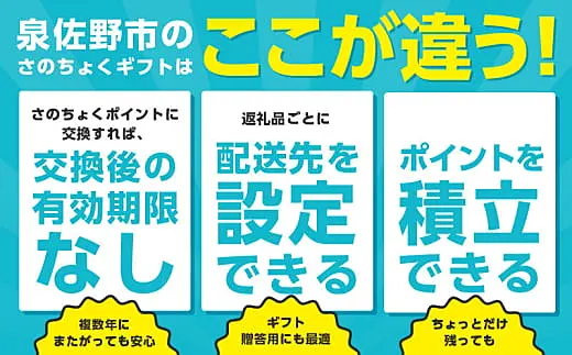 さのちょくポイントに交換すれば、いつでも好きなタイミングで返礼品と交換可能。
