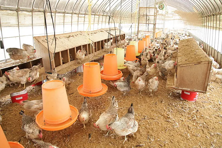 平飼いとは、鶏舎内、または、屋外において、鶏が床面(地面)を自由に運動できるようにして飼育する方法です。(JAS法に記載)