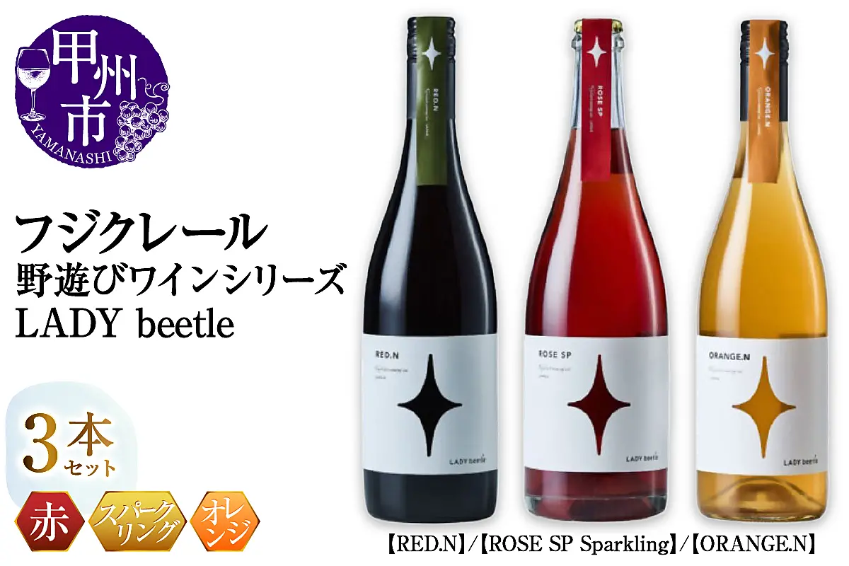 フジクレール 野遊びワイン【RED.N】【ROSE SP Sparkling】【ORANGE.N】3本セット(MG)D5-635