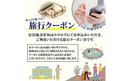 ・旅行 Web カタログからお好きな宿泊先を後から選んでお申し込み頂けるカタログ形式の旅行クーポン券 30,000 円分です。