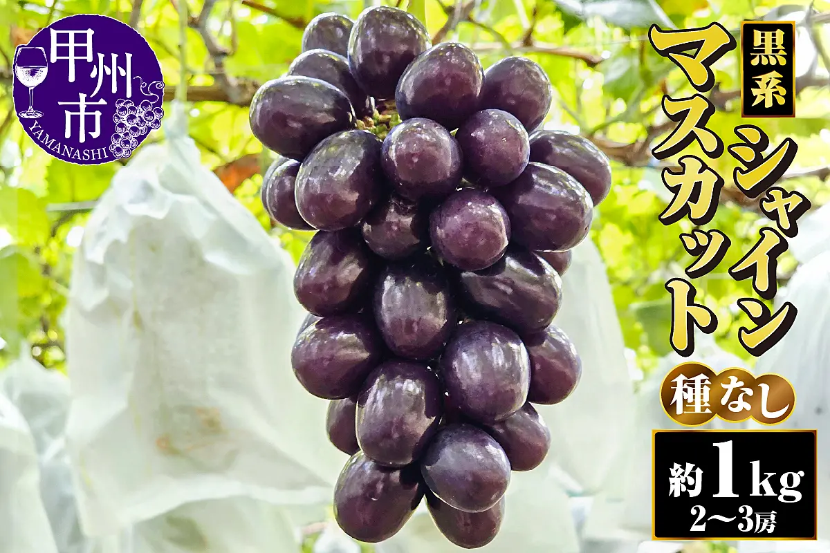 【朝採り直送】黒系シャインマスカット(種無し)約1kg(2~3房)【2026年発送】(AF)B18-413