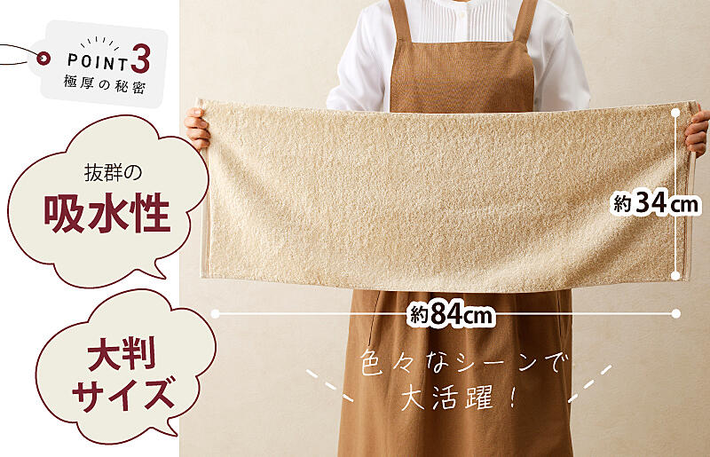 - 極厚フェイスタオル8枚セット(生成色)約34cm×86cm 約150g