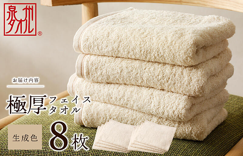 099H3676 極厚フェイスタオル 8枚 生成色 泉州タオル