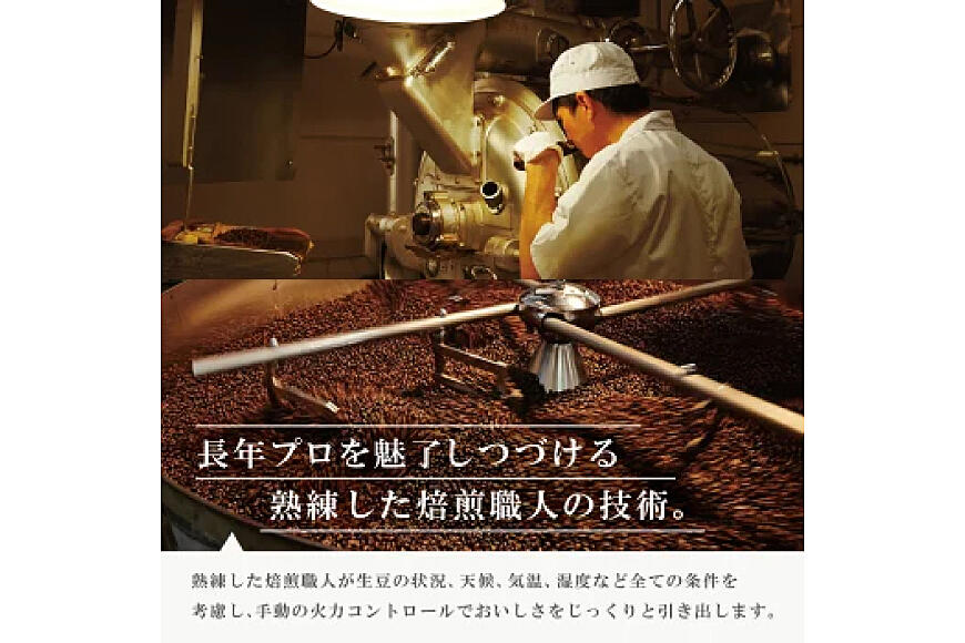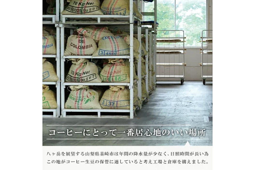 時間をかけじっくりと焙煎することによって、渋味をなくし、まろやかさの中にコクと透明感のある甘く芳醇な味わいの「エイジングコーヒー」となります。