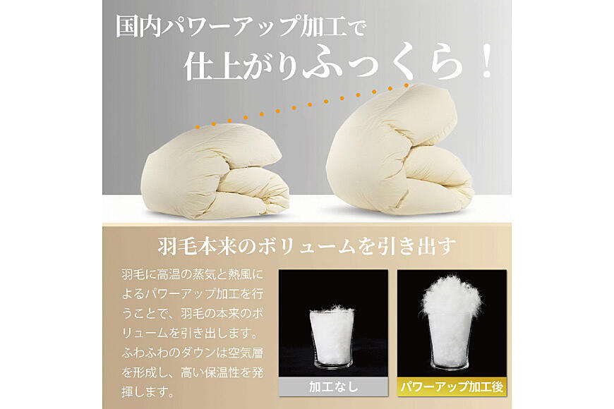 パワーアップマシンでダウンを高温スチーム処理し、攪拌・乾燥させ羽毛本来のボリュームを引き出します。