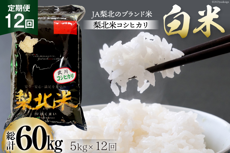 【定期便】【12回 米 定期便 】 武川米 コシヒカリ 5kg×12回 総計60kg [梨北農業協同組合 20743673]