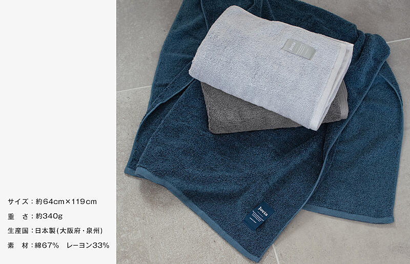 - 綿:67%、レーヨン:33% 日本製(泉州タオル)