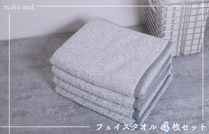 099H1682 ムコタオル 透かし織りフェイスタオル 4枚セット(チャコール・シャドウ)