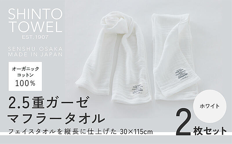 099H3954-1 SHINTO TOWEL「2.5重ガーゼ・マフラータオル」(ホワイト)2枚セット オーガニックコットン