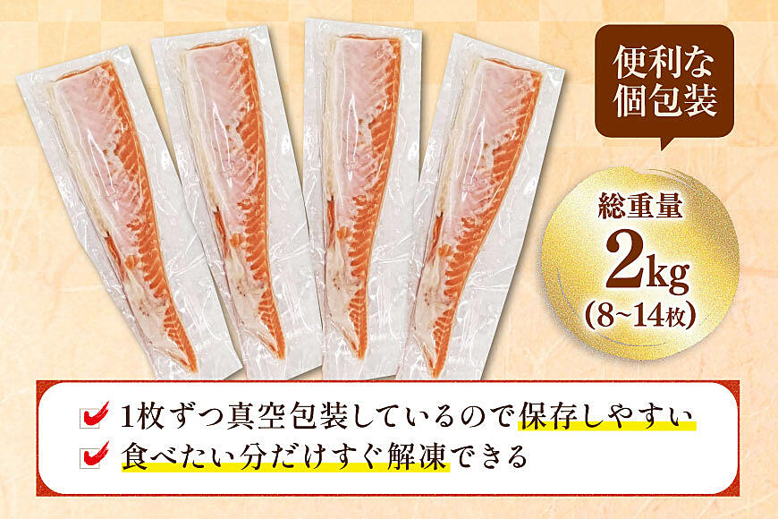 訳あり トロ サーモン ハラス フィーレ 刺身 無添加 2kg 個包装 [足利本店 20565619]