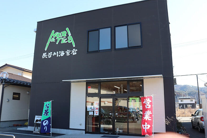 震災で唯一残ったトラックの看板から取った「NORI&TEA」のマークを店舗に掲げ『お客様に喜んで頂ける、美味しい海苔とお茶を』の想いは変わらず夫婦二人で頑張っています。
