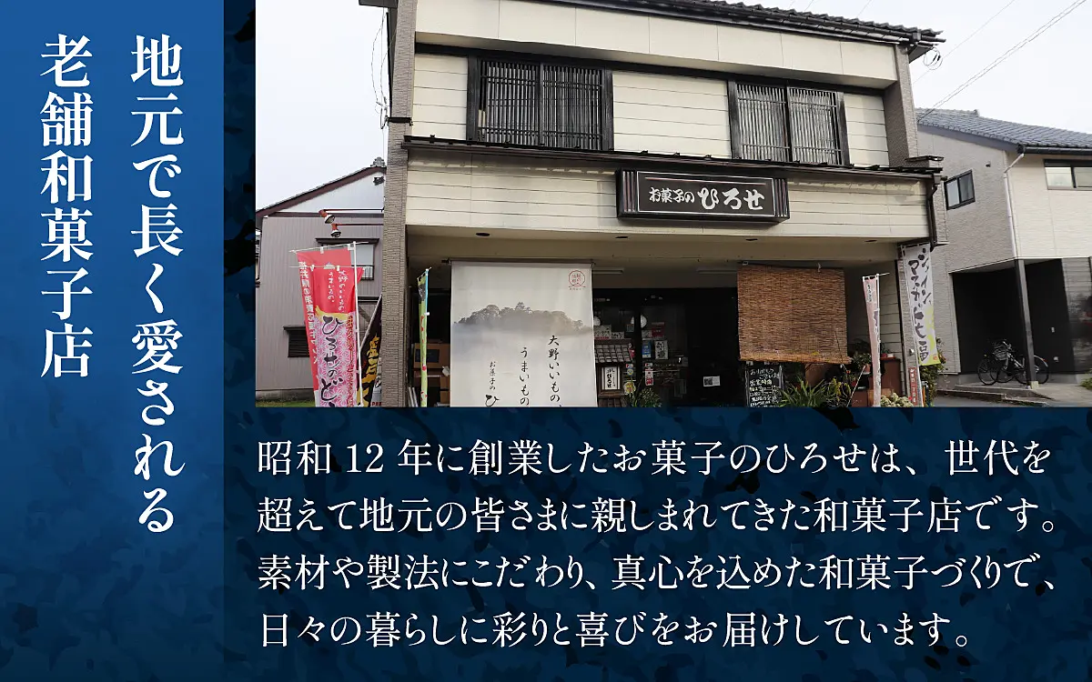 お菓子のひろせは、昭和12年創業、地元で長く愛されている老舗和菓子店です。