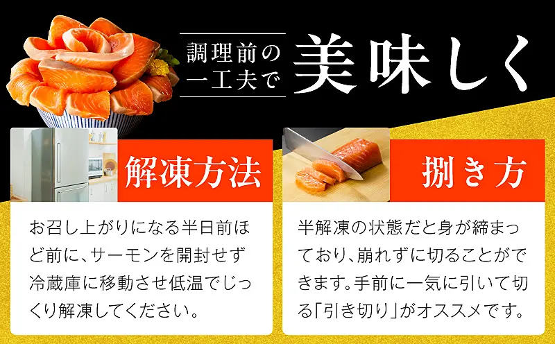 099Z347 サーモン 定期便 1kg×全6回【ポーション 訳あり サイズ不揃い 刺身 海鮮丼 さーもん サラダ】