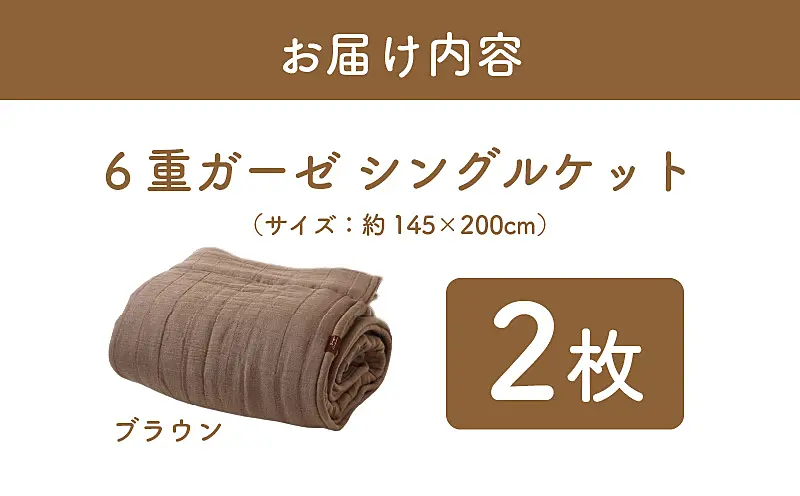 G2919 【スピード発送】“癒しのとろふわ”泉州南部織-toronto-/6重ガーゼシングルケット 2枚(ブラウン)