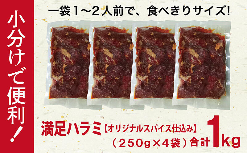 G3356 【満足牛ハラミ】オリジナルスパイス仕込み 合計1kg 【味付け 小分け 簡単調理 牛肉 250g×4P】