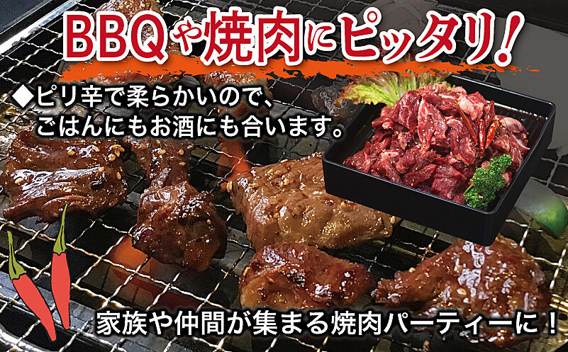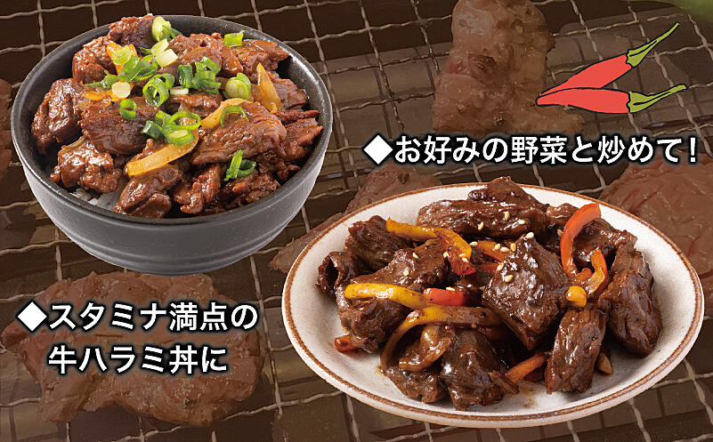 中辛タレに漬け込んだ牛ハラミは、程よい弾力と柔らかさが特徴で、ジューシーな味わいが楽しめます。焼肉パーティーやBBQなどのシーンにもぴったりで、白ご飯との相性も抜群!辛さの中に旨みを感じる味付けで、食欲をそそります。