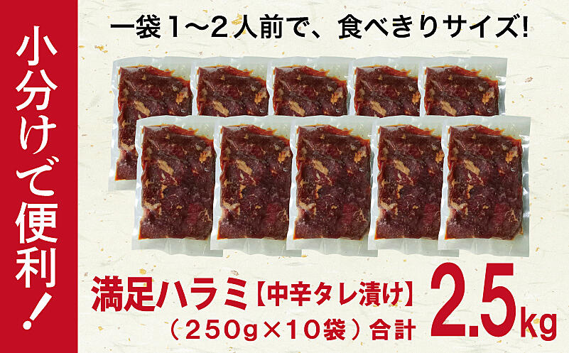 G3410 【満足牛ハラミ】中辛タレ漬け 合計2.5kg 【味付け 小分け 簡単調理 BBQ 牛肉 250g×10P】