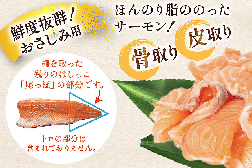 - 足利本店 宮城県 気仙沼市 サーモン さけ サケ 魚介類 鮭 尾っぽ はしっこ お刺し身 刺し身 刺身 個包装 海鮮 魚介 魚 小分け 冷凍 真空包装 ノルウェー