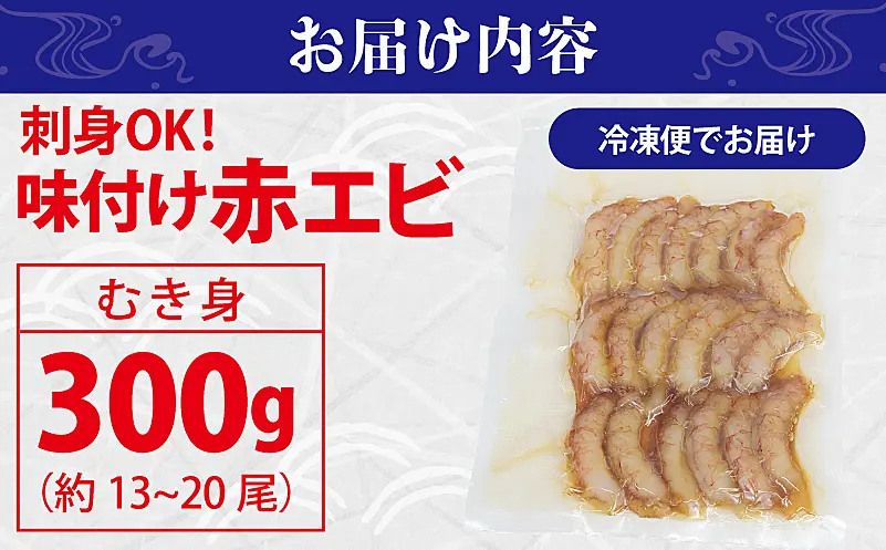 G3114 刺身OK! 味付け 赤エビ 300g 約13~20尾【下処理不要 殻なし 生食可 むき身 可食部のみ えび 海老】