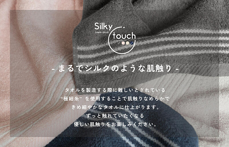 なめらかできめ細やかな、まるでシルクのような肌触りのタオルです。