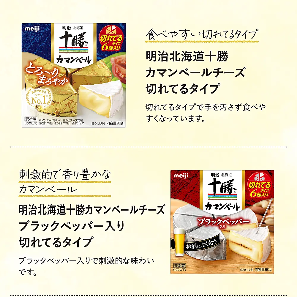 芽室町に国内最大級の工場を持つ株式会社 明治の「明治北海道十勝ブランド」のプロセスチーズと、カマンベールチーズを贅沢に詰合せています。