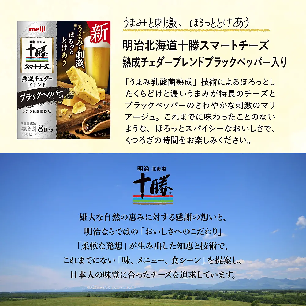 明治ならではの「おいしさへのこだわり」が生みだした「うまみ乳酸菌熟成」により、うまみが増し、口どけの良い日本人好みのチーズができました。